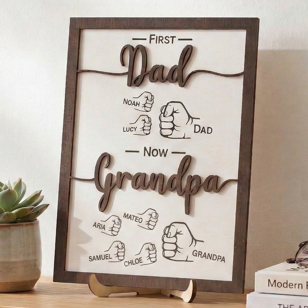 First Dad Now Grandpa Personalized Wooden Sign Gift for Grandpa Y80
