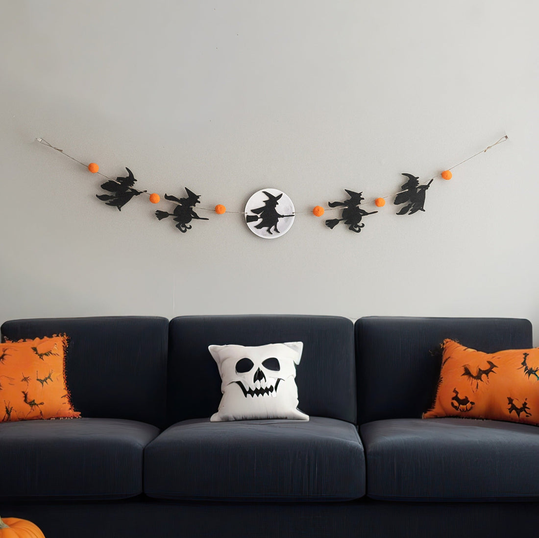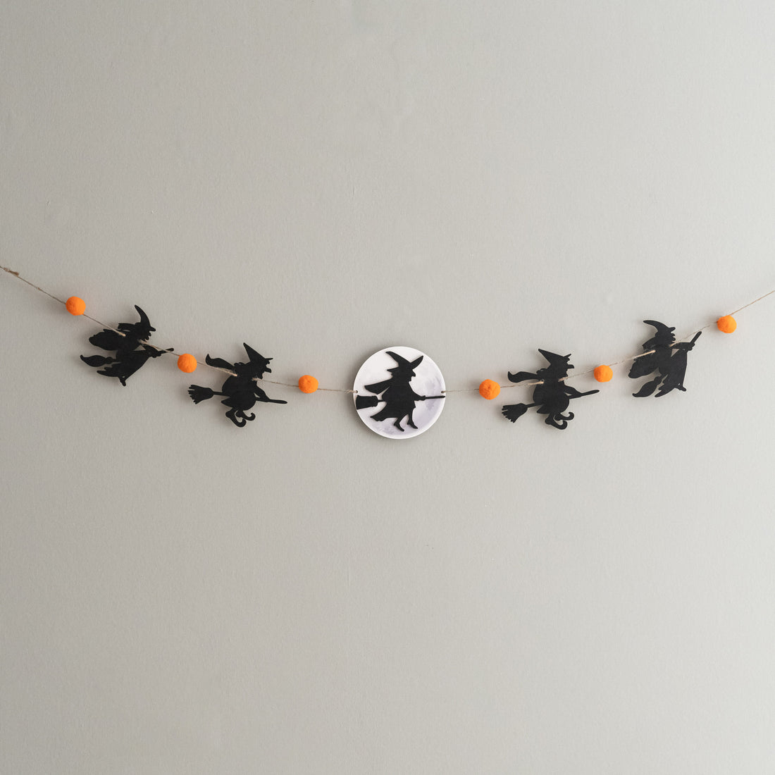 Wooden Witch Halloween Garland Wood for Spooky Wall Decor R37
