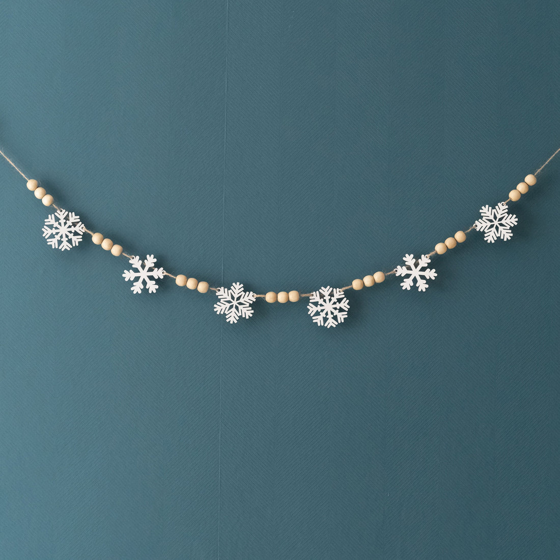 Wooden Snowflake Garland Wood Holiday Garland for Scandinavian Christmas Decor Y03