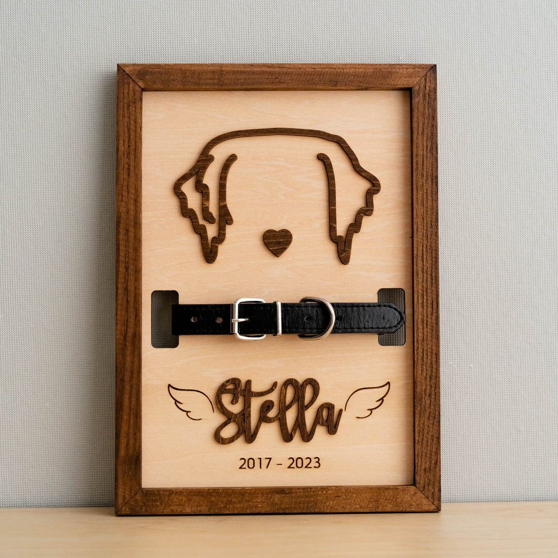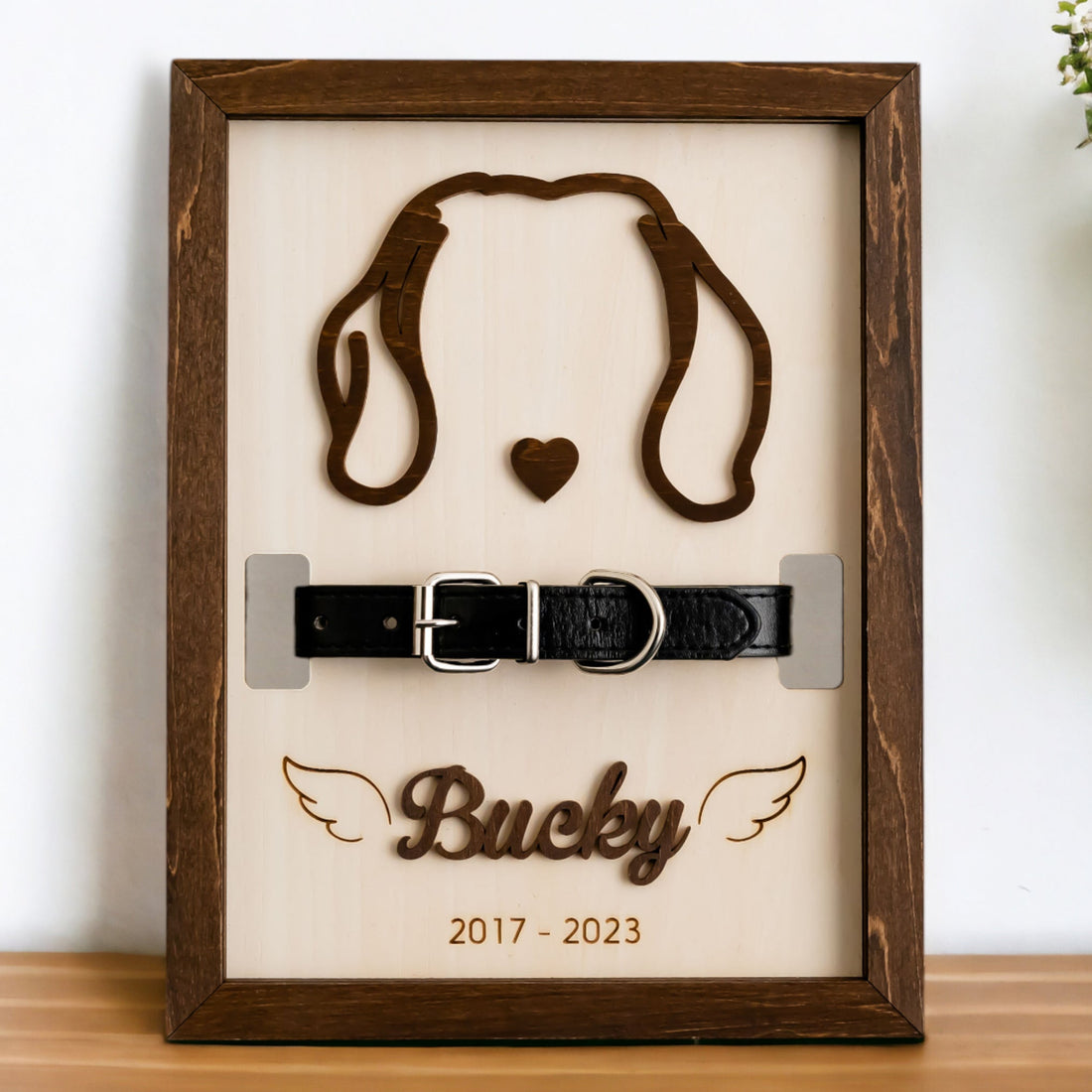 Dog Ear Drawing Framed Wood Pet Memorial Gift with Collar E71