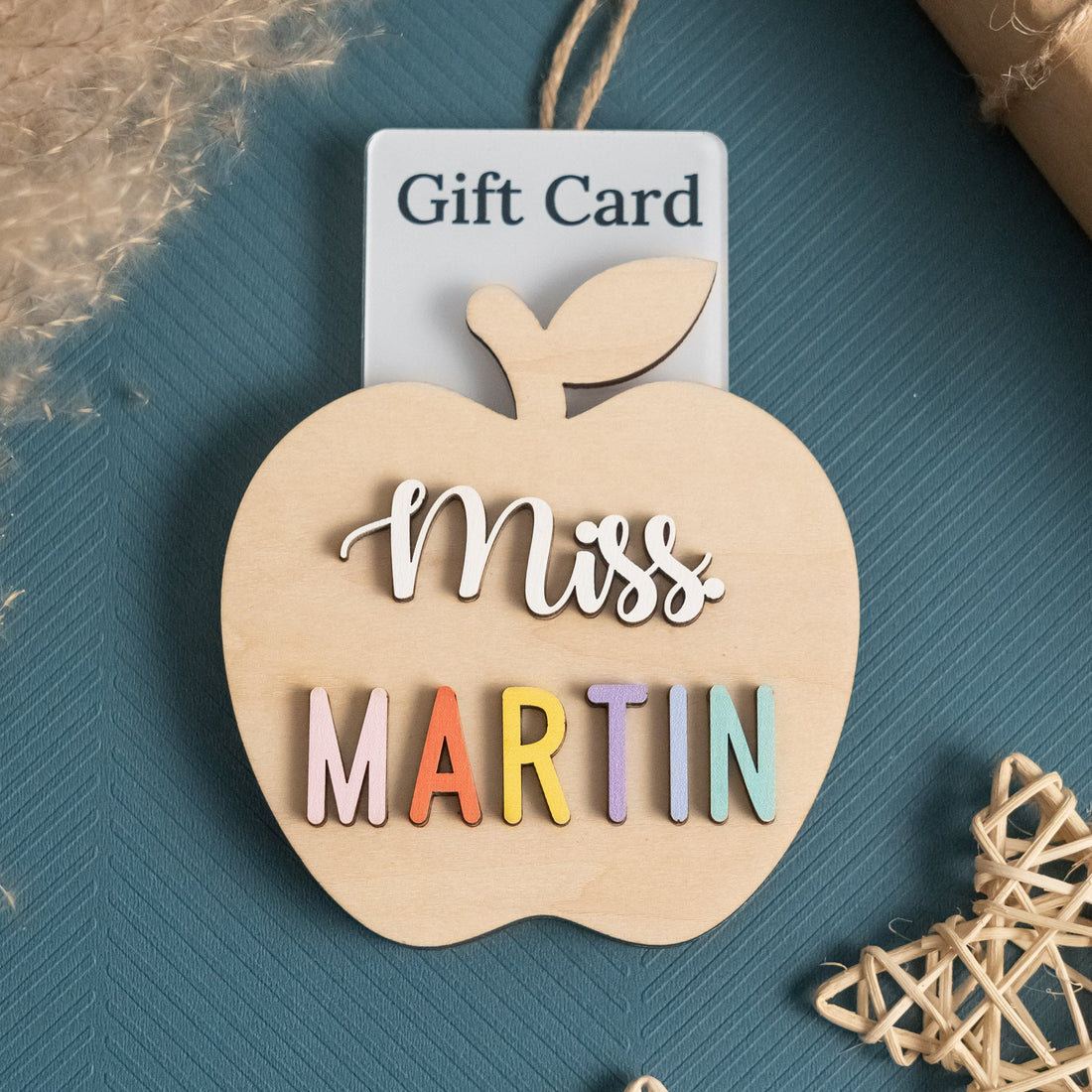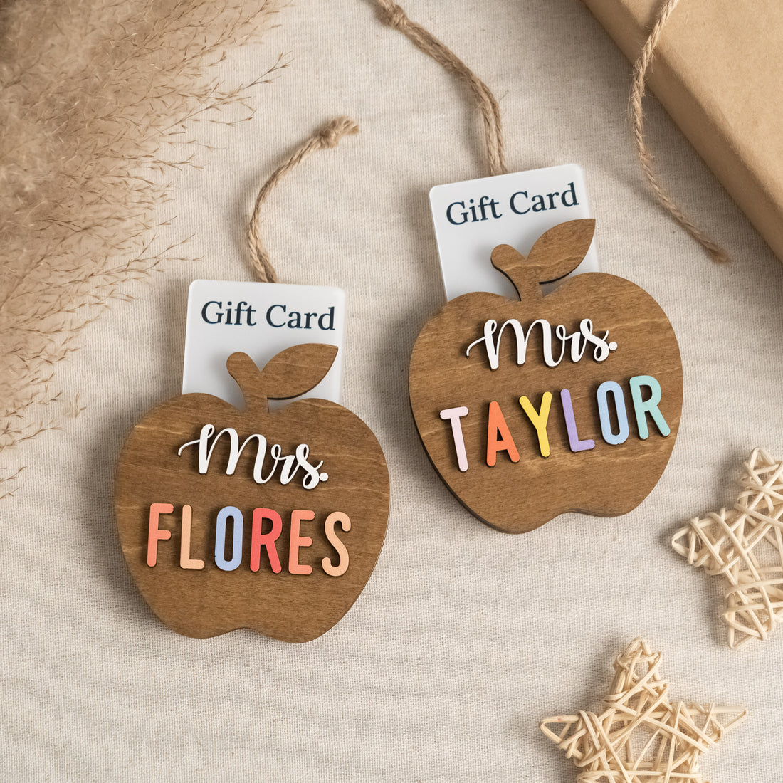 Teacher Gift Card Holder Wood for Teacher Gift and Apple Ornament R78