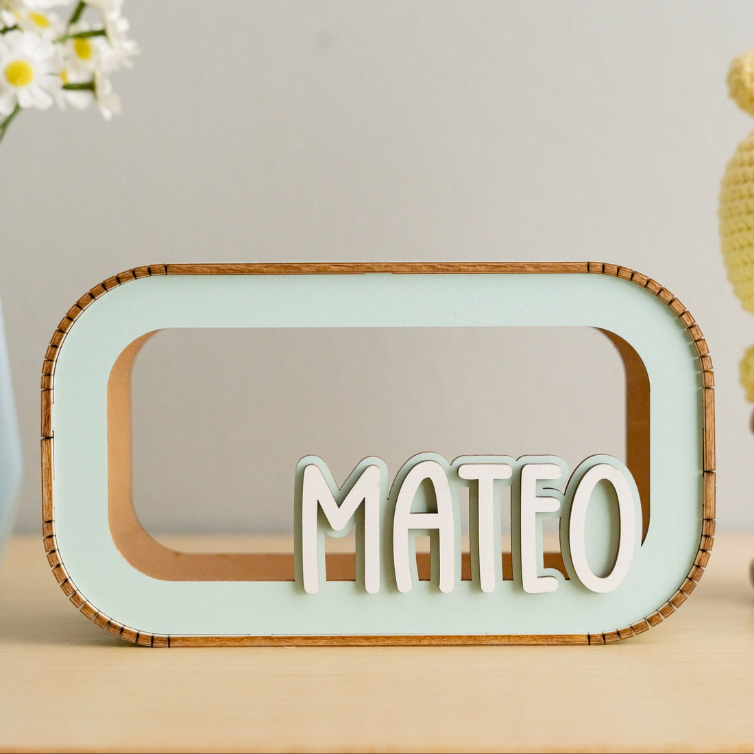 Personalized Wooden Piggy Bank with Nursery background for Kids Room Decor E62