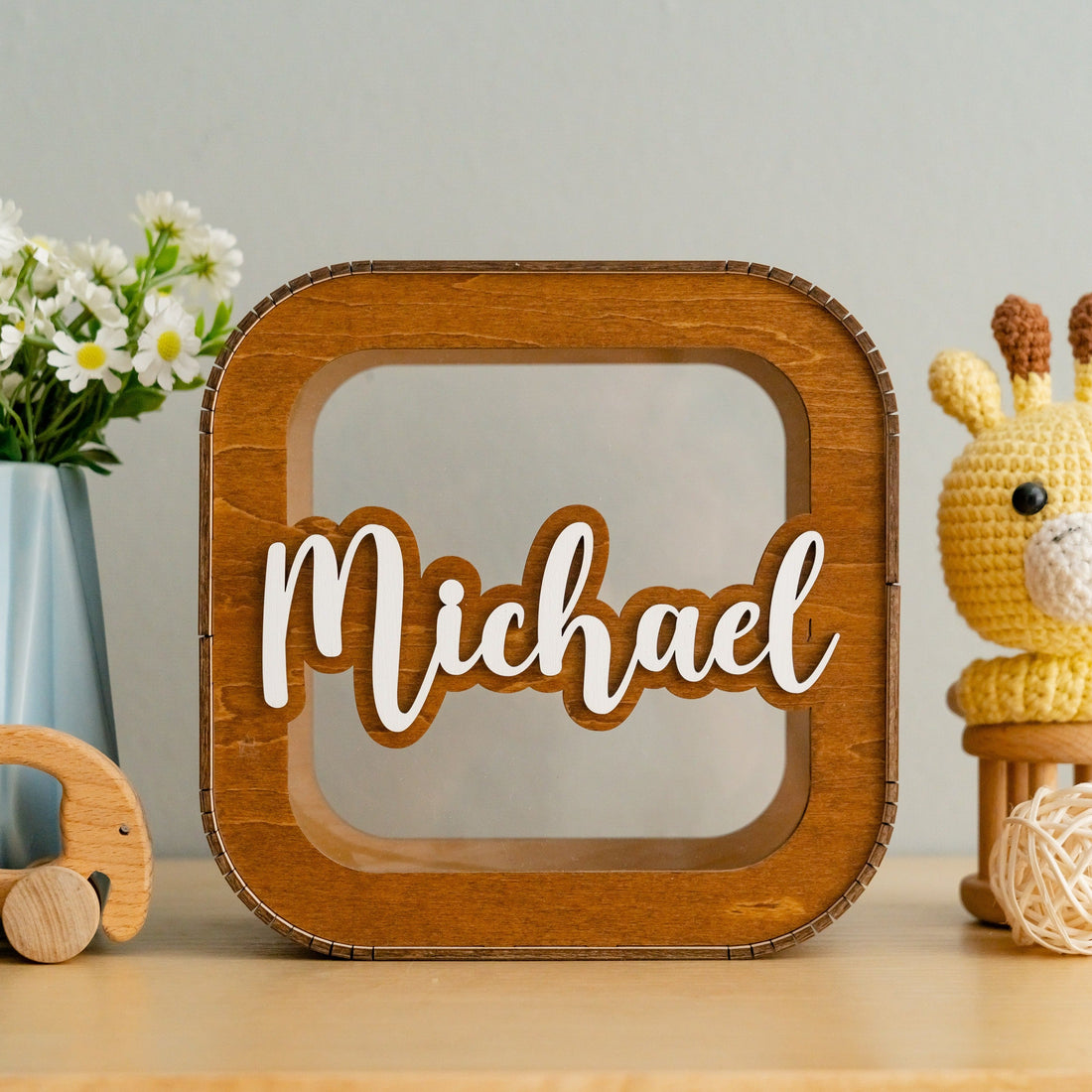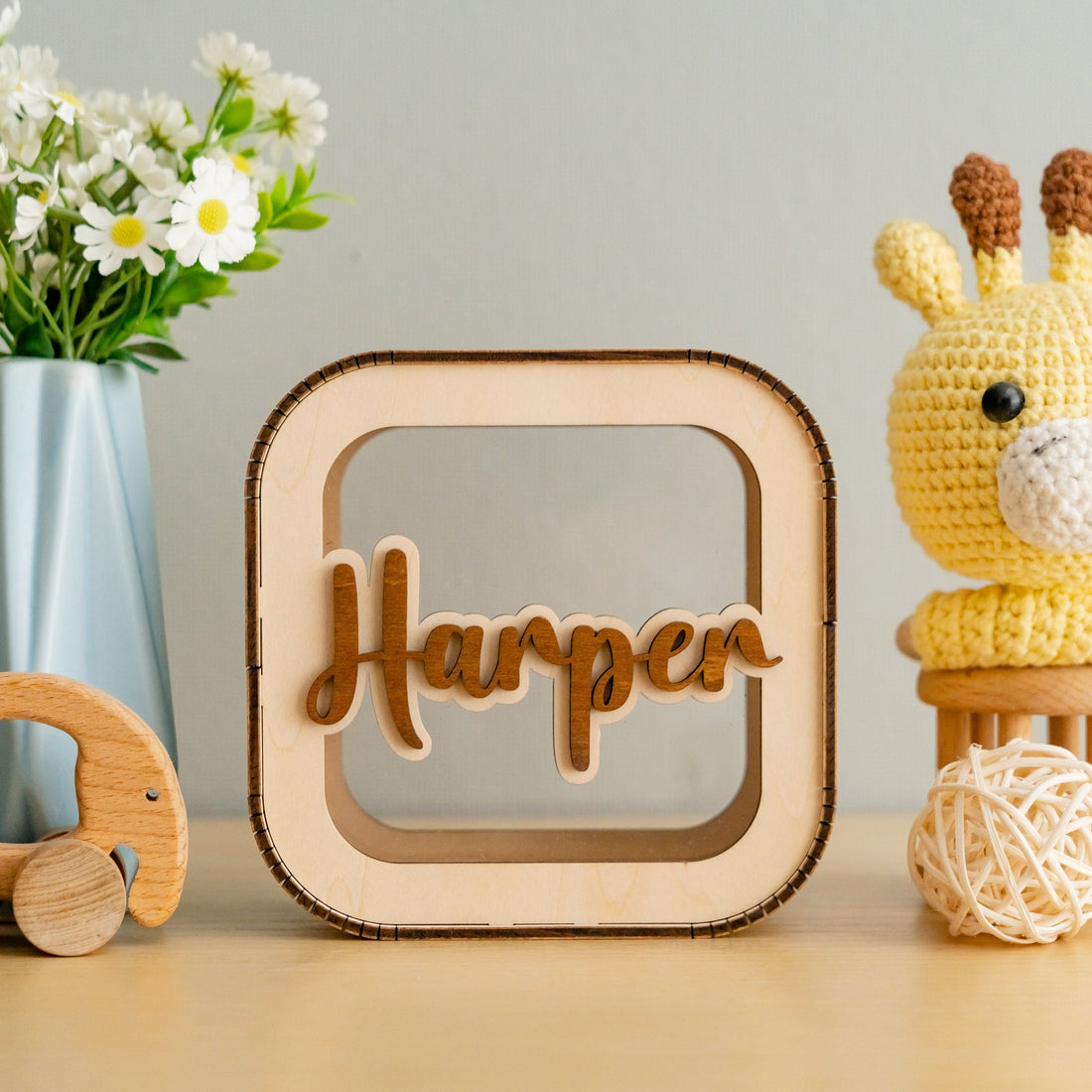 Personalized Wooden Piggy Bank Wood Acrylic Baby Gift Money Bank Y21