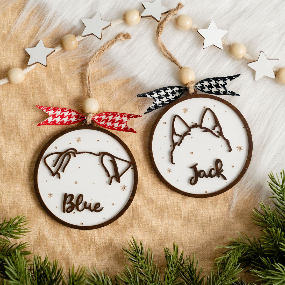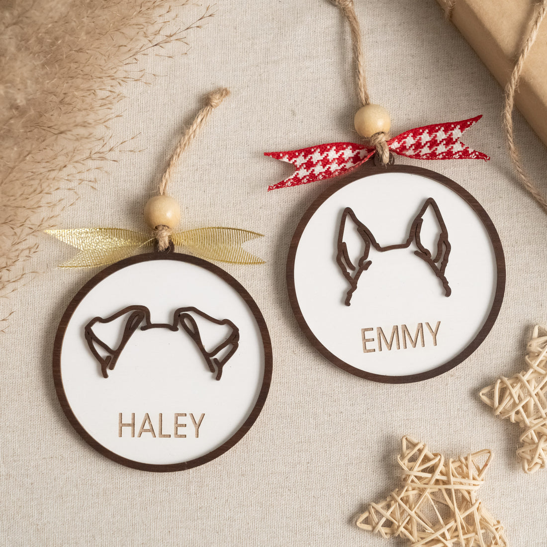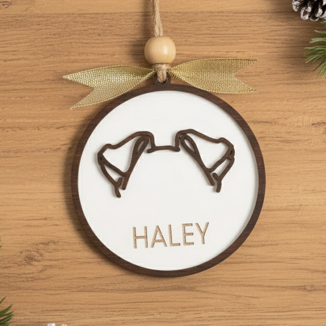Personalized Dog Ear Ornament Wood for Dog Christmas Decor R66