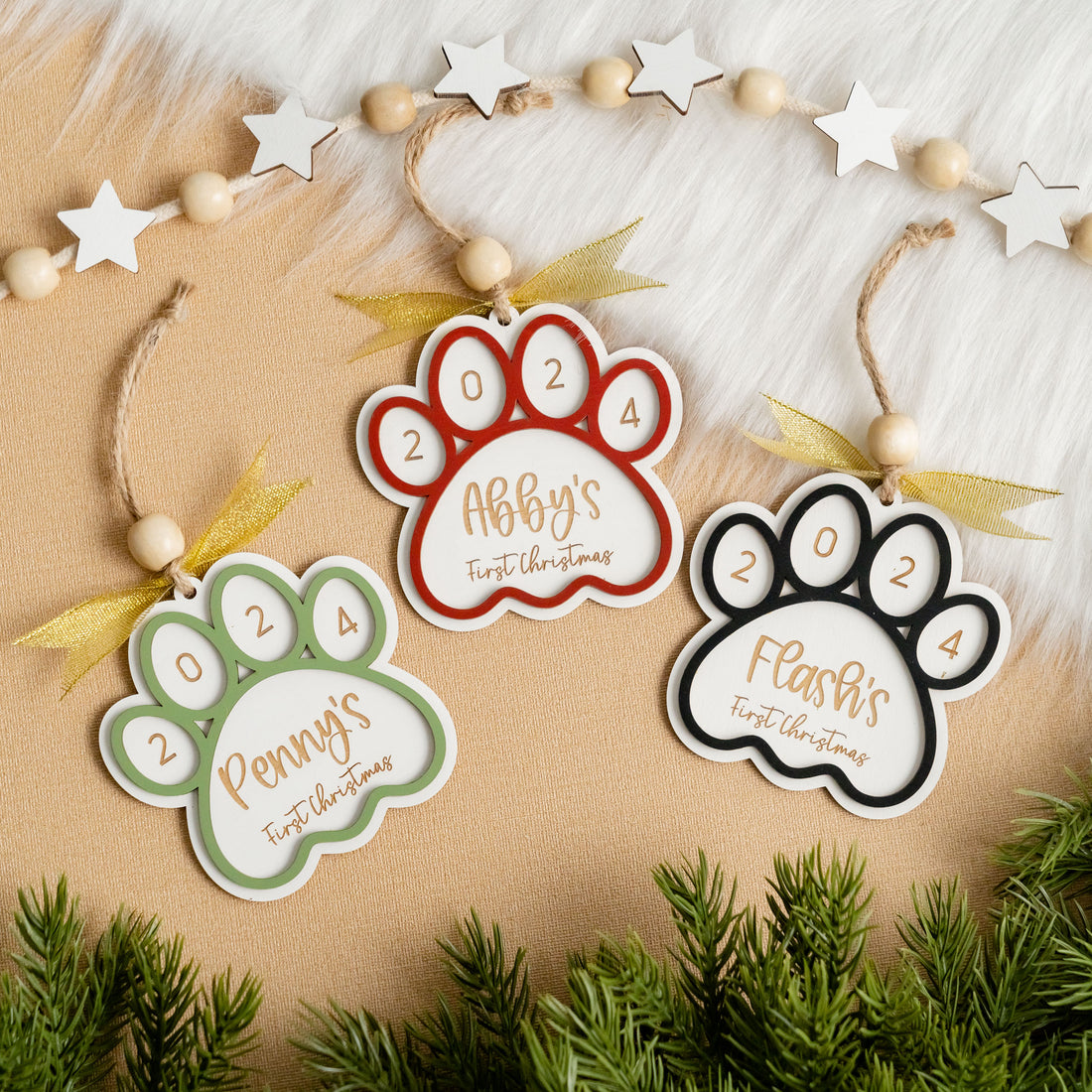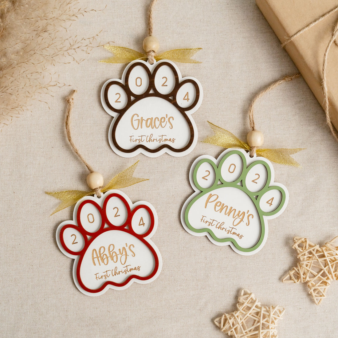 Dog First Christmas Paw Ornament Wood for Dog First Christmas Ornament and Personalized Dog Ornament O35
