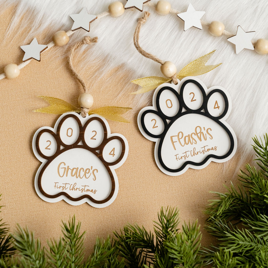 Dog First Christmas Paw Ornament Wood for Dog Christmas Ornament and Personalized Paw Ornament O35