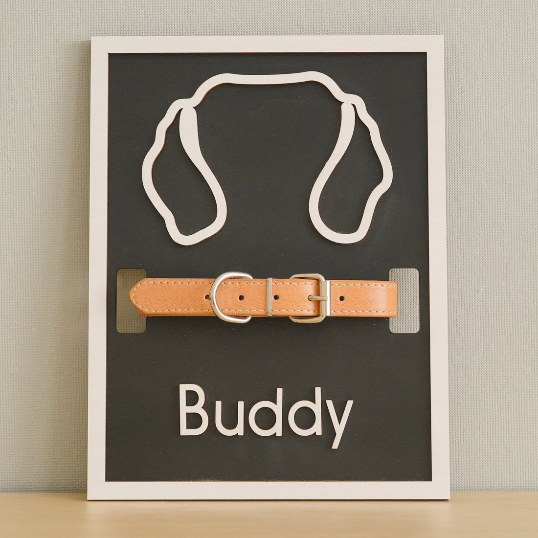 Dog Ear Drawing Framed Wood Pet Memorial Gift for Collar Display E17