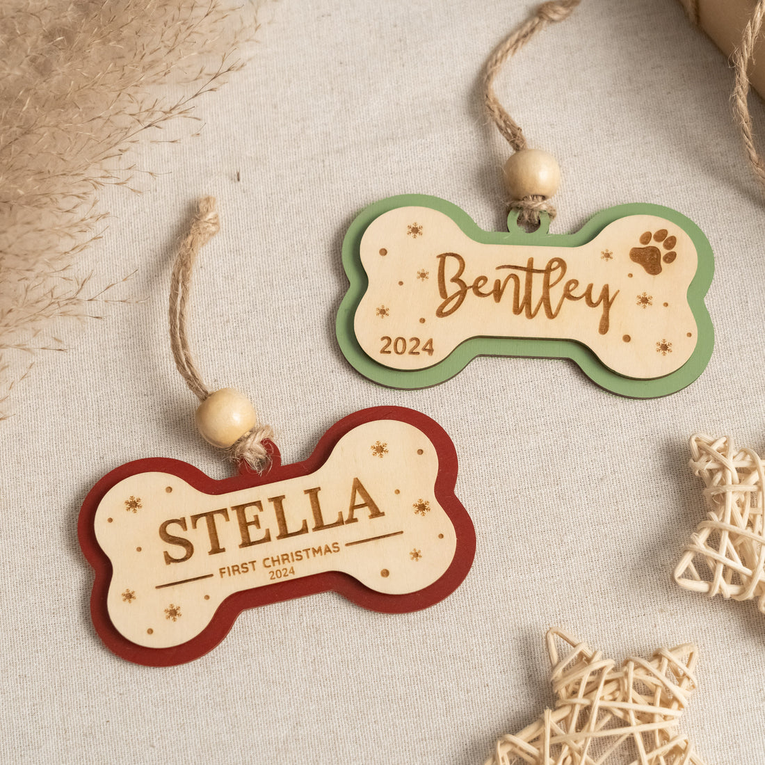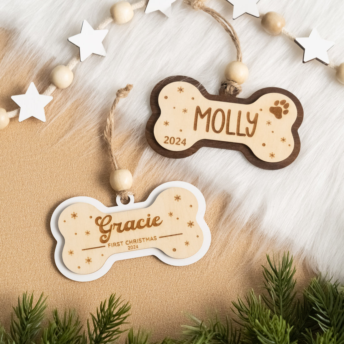 Personalized Wooden Dog Bone Christmas Ornament for Dog Christmas Tree Ornaments and Custom Pet Ornament M49