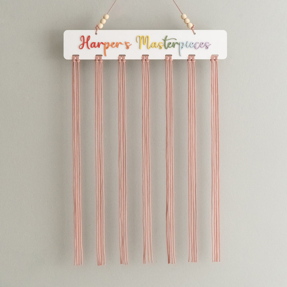 This macrame kids art hanger is a beautiful and practical way to display children artwork...
