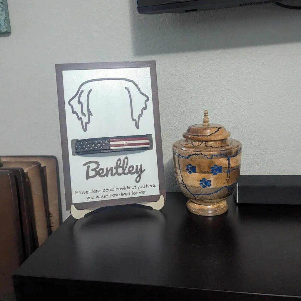 Perfect for pet parents, dog moms, and cat lovers, this wooden pet memorial is created for those who want to keep their furry companion close even after loss. The clean and thoughtful design fits naturally into living rooms, bedrooms, offices, or entryways, adding warmth without overwhelming the space.