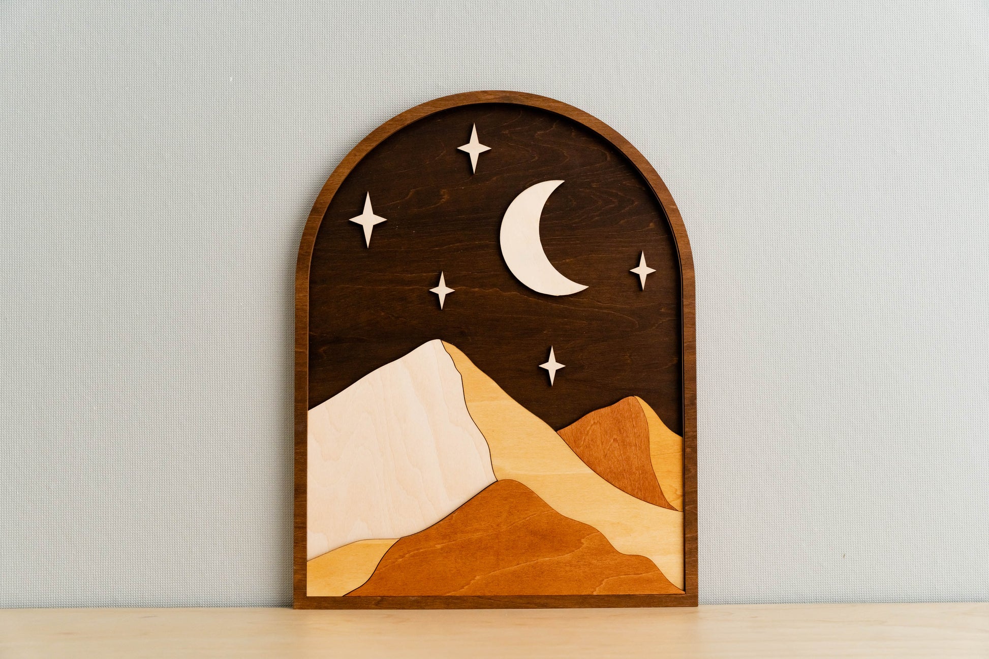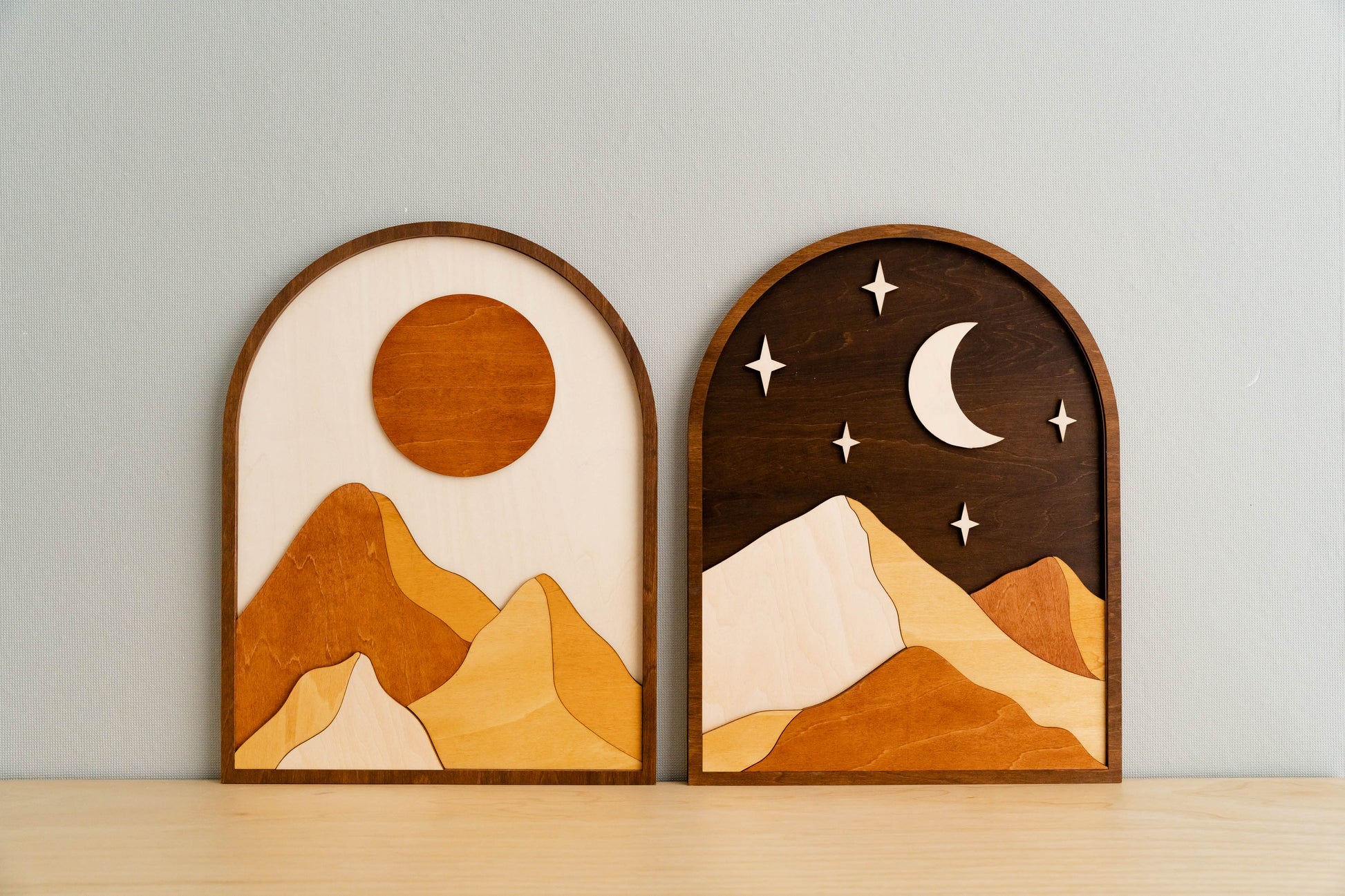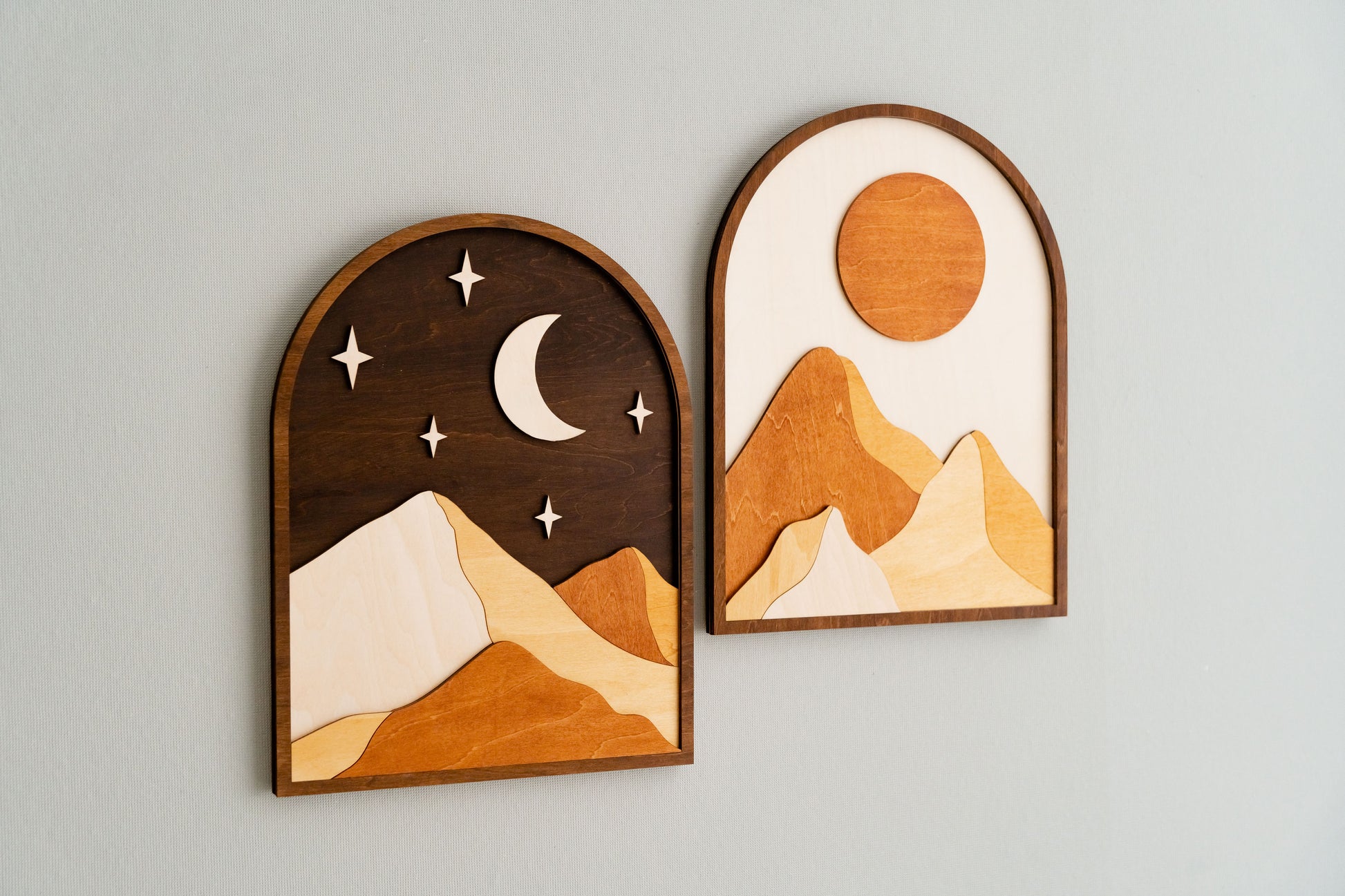 Embrace the allure of the cosmos with our Celestial Sun and Moon Wood Art Duo. Transform your living space with these captivating bohemian-inspired wall hangings, ideal for infusing character into any setting. Whether displayed above your bed or gracing your apartment walls, this expansive abstract artwork radiates warmth and vitality throughout your home.
