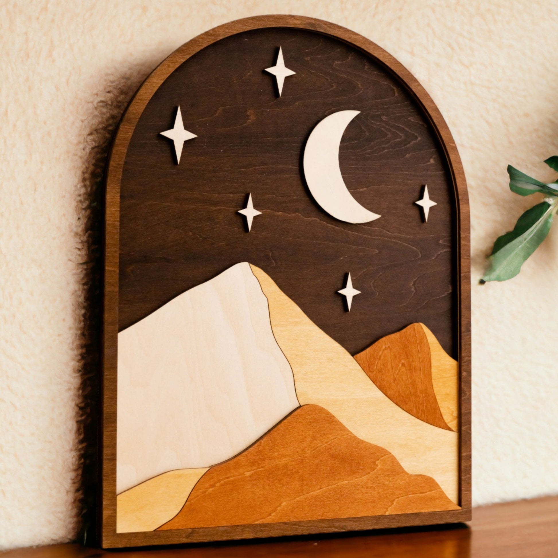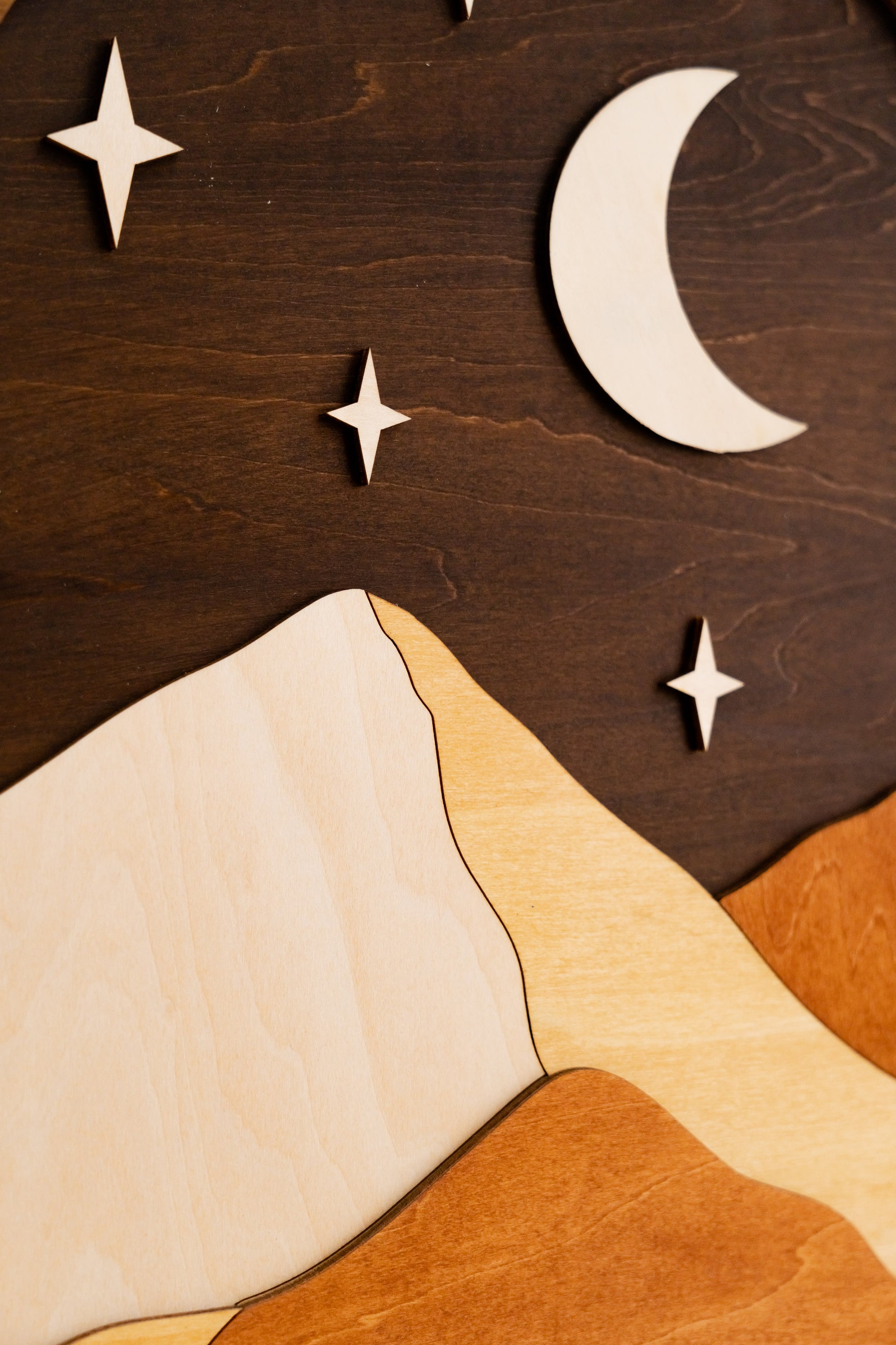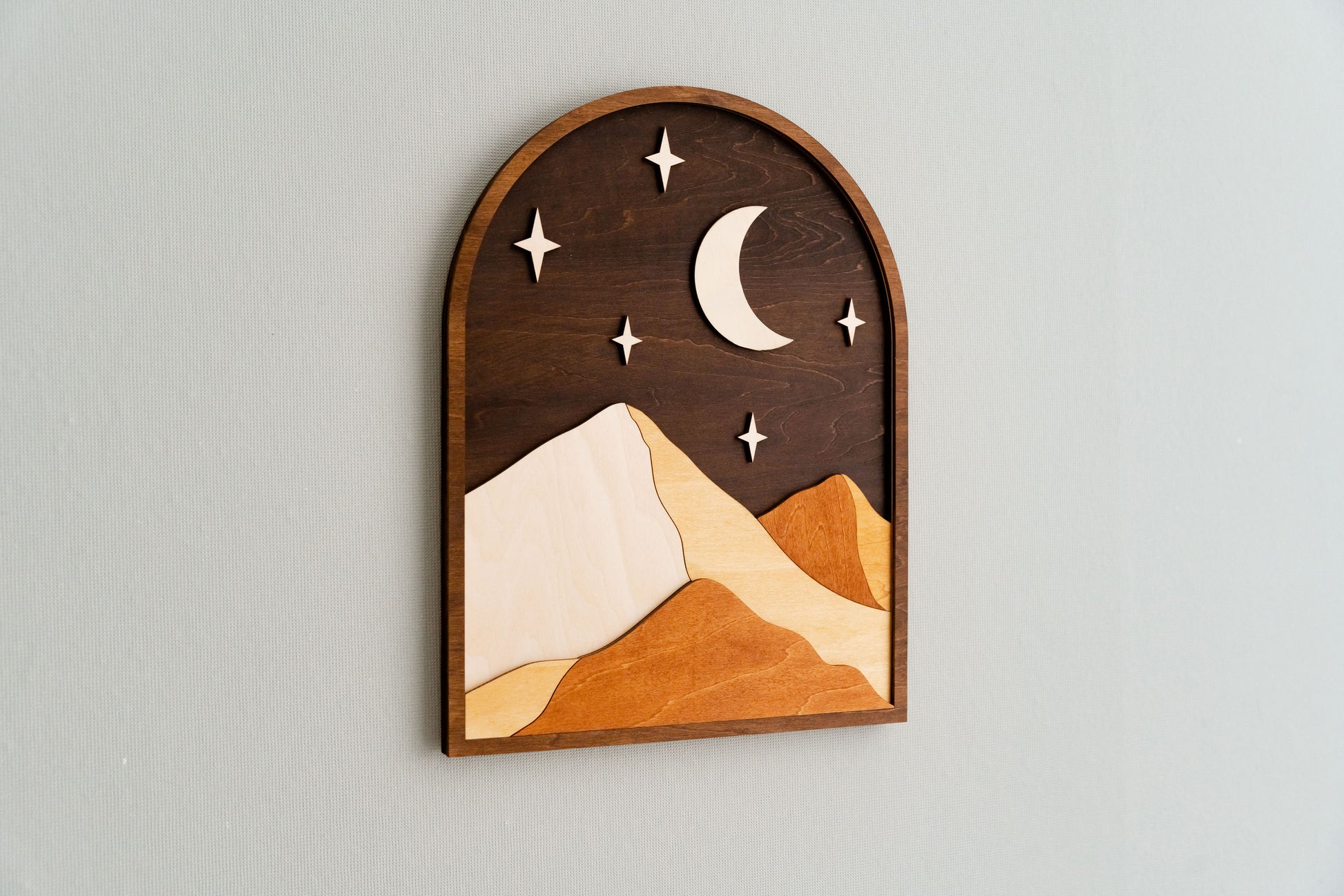 Embrace the allure of the cosmos with our Celestial Sun and Moon Wood Art Duo. Transform your living space with these captivating bohemian-inspired wall hangings, ideal for infusing character into any setting. Whether displayed above your bed or gracing your apartment walls, this expansive abstract artwork radiates warmth and vitality throughout your home.