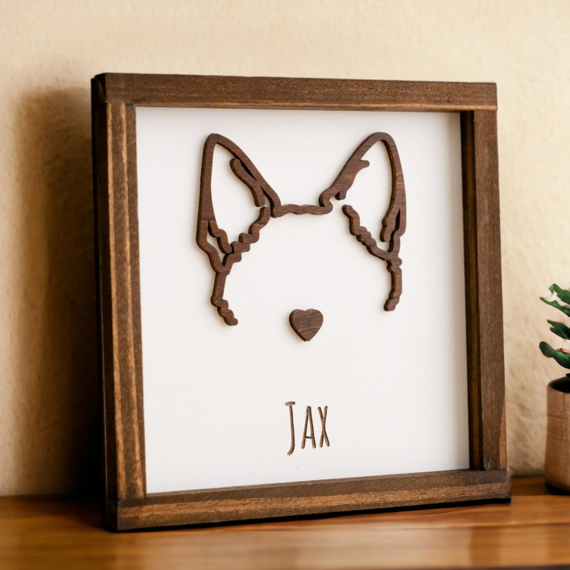 Honor the memory of your beloved furry companion with our Custom Framed Dog Ear Drawing, an exquisite pet memorial decor piece for any home. Its boho, rustic, and minimalist style adds a cozy, heartfelt touch to bedrooms, living rooms, or home offices. This unique piece serves as a beautiful tribute to the special bond you shared with your pet, making it a perfect keepsake for yourself or a meaningful gift for a loved one. Whether for Memorial Day, the holidays, or Thanksgiving, this thoughtful decor keeps your pet’s memory alive in a special way.