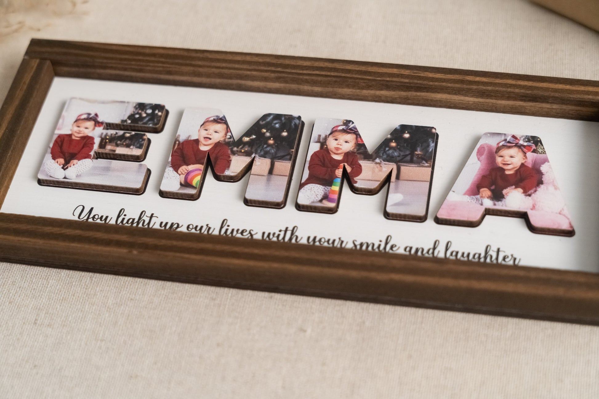 This Personalized Name Photo Wooden Frame is a meaningful way to showcase your child’s name filled with precious baby photos. Each letter becomes a window to special moments, turning everyday pictures into a warm and personal décor piece.
