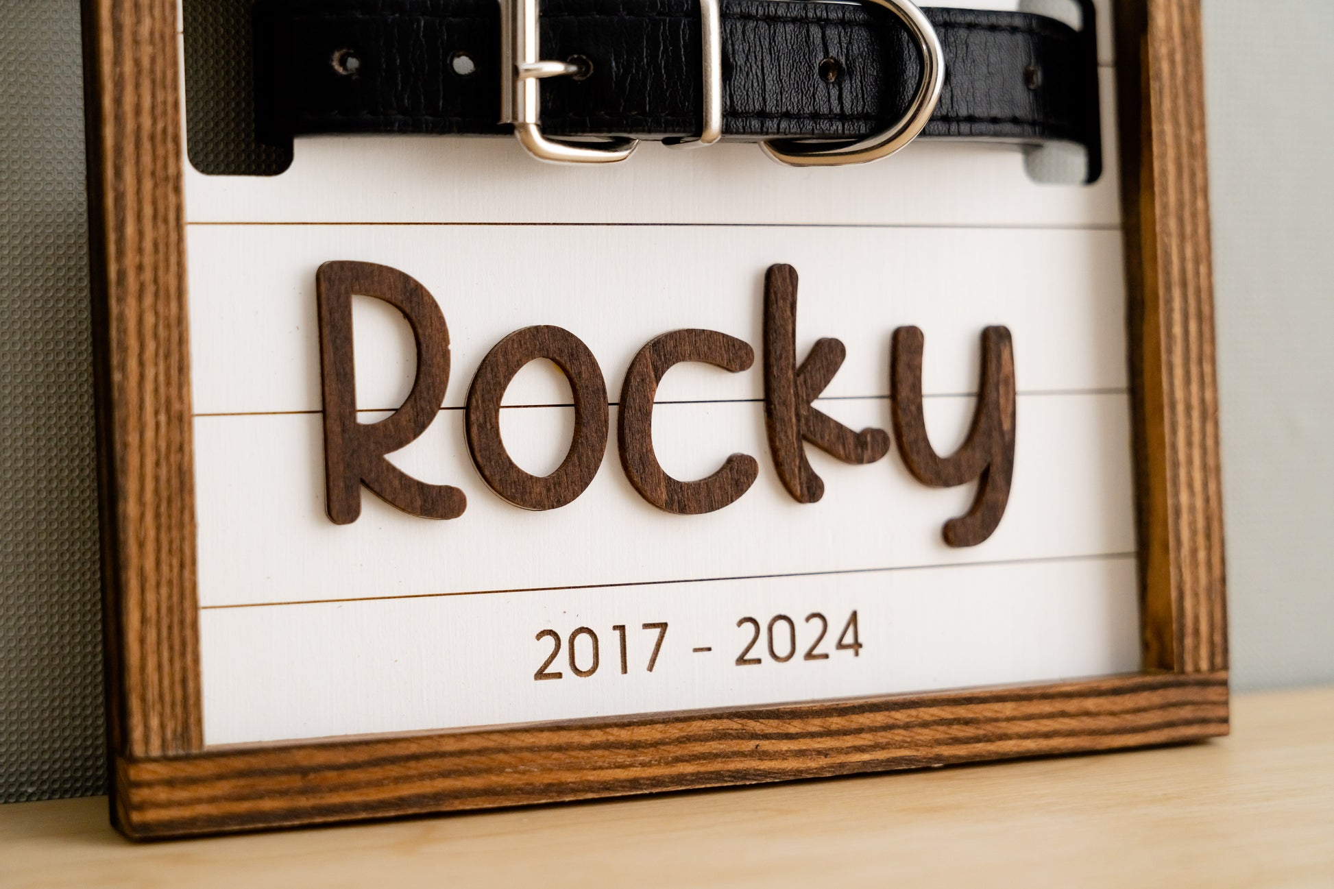 The dog ear drawing framed wood is a meaningful keepsake created to honor the memory of a beloved pet. This piece combines a custom ear drawing with your pet’s collar, turning cherished details into a lasting tribute.