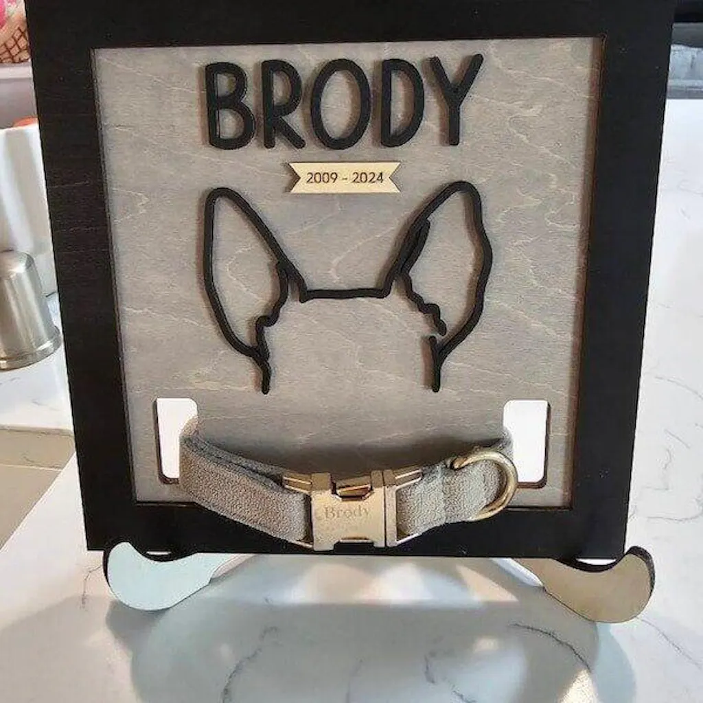 Dog Ear Drawing Framed Wood for Pet Memorial Gift and Keepsake J51