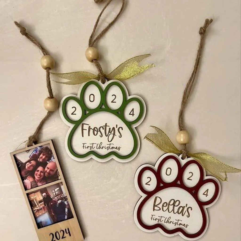 Ideal as a heartfelt dog lover gift, this ornament is also a thoughtful pet christmas ornament for new pet parents. Whether hung on the tree or styled as rustic pet decor in the living room, nursery, or office, it becomes a meaningful first christmas ornament that preserves precious memories for years to come.