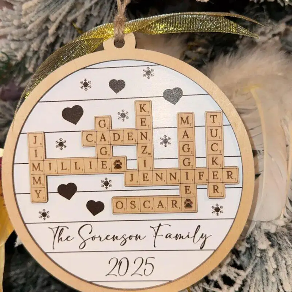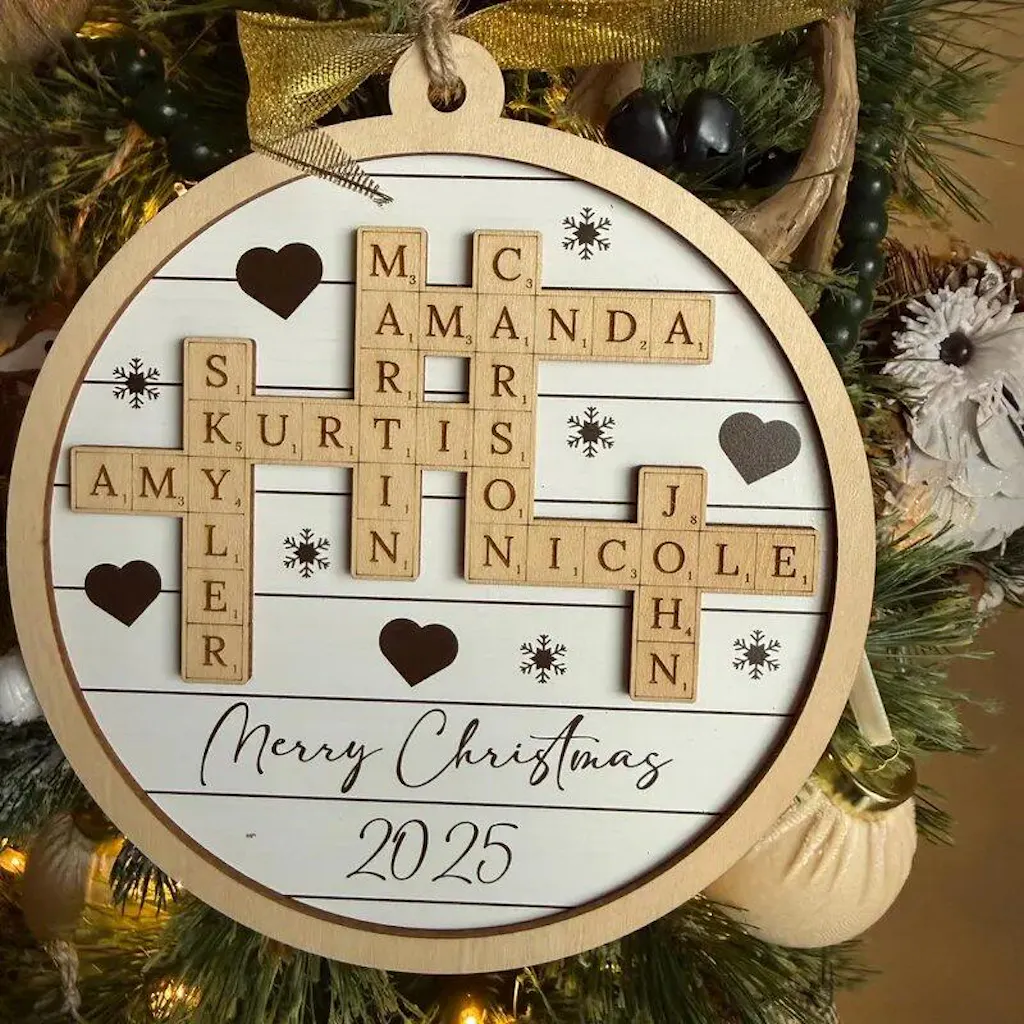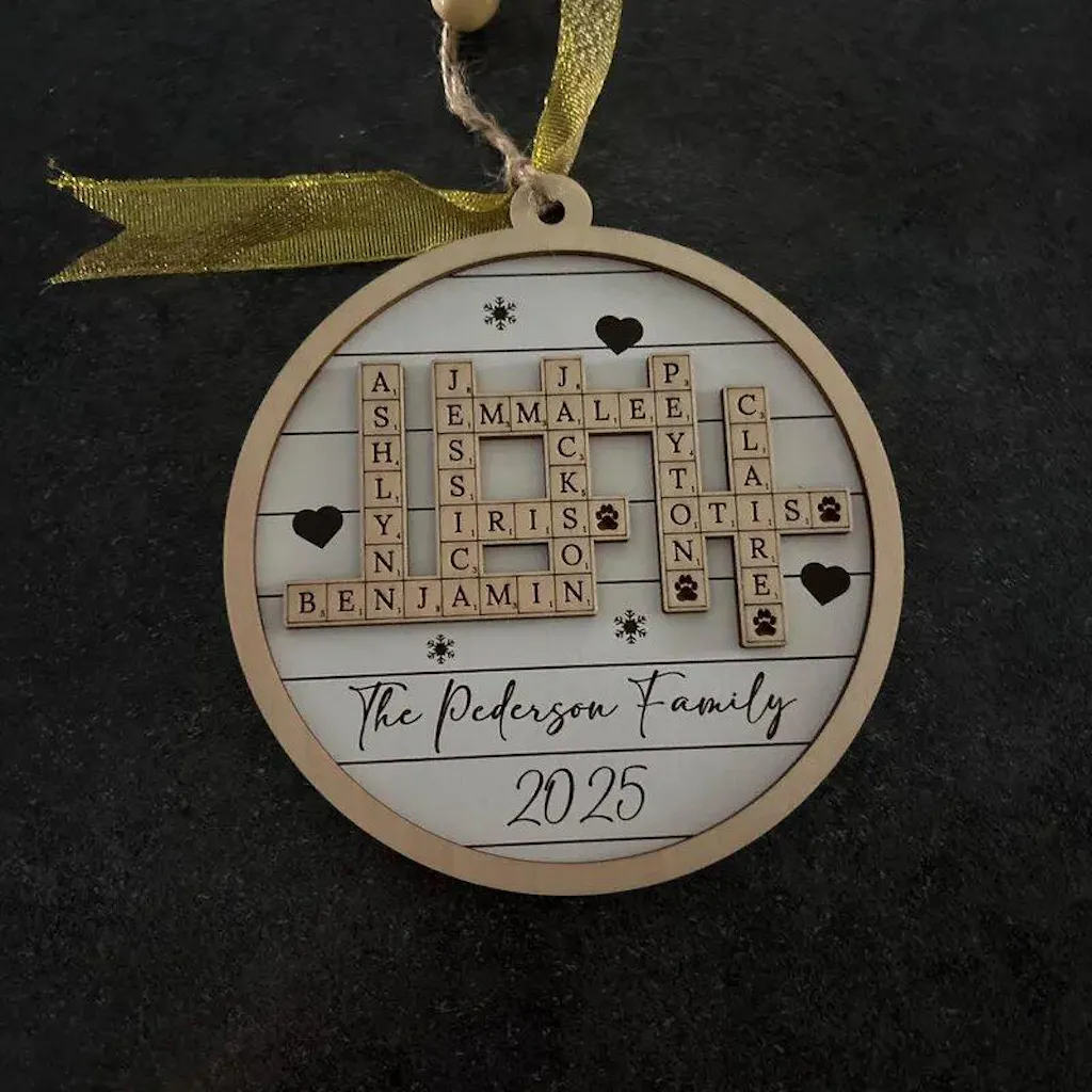Family Crossword Wooden Ornament Personalized Family Christmas Gift D35