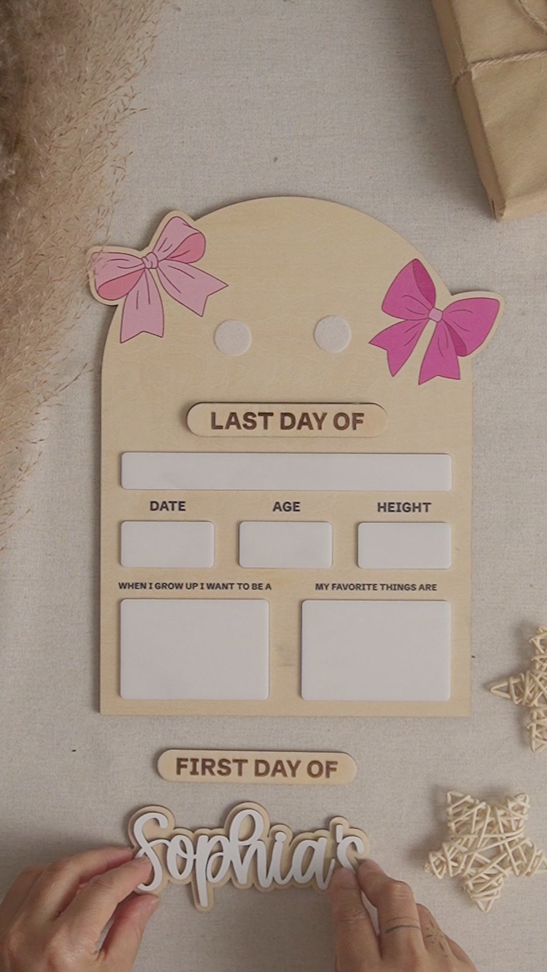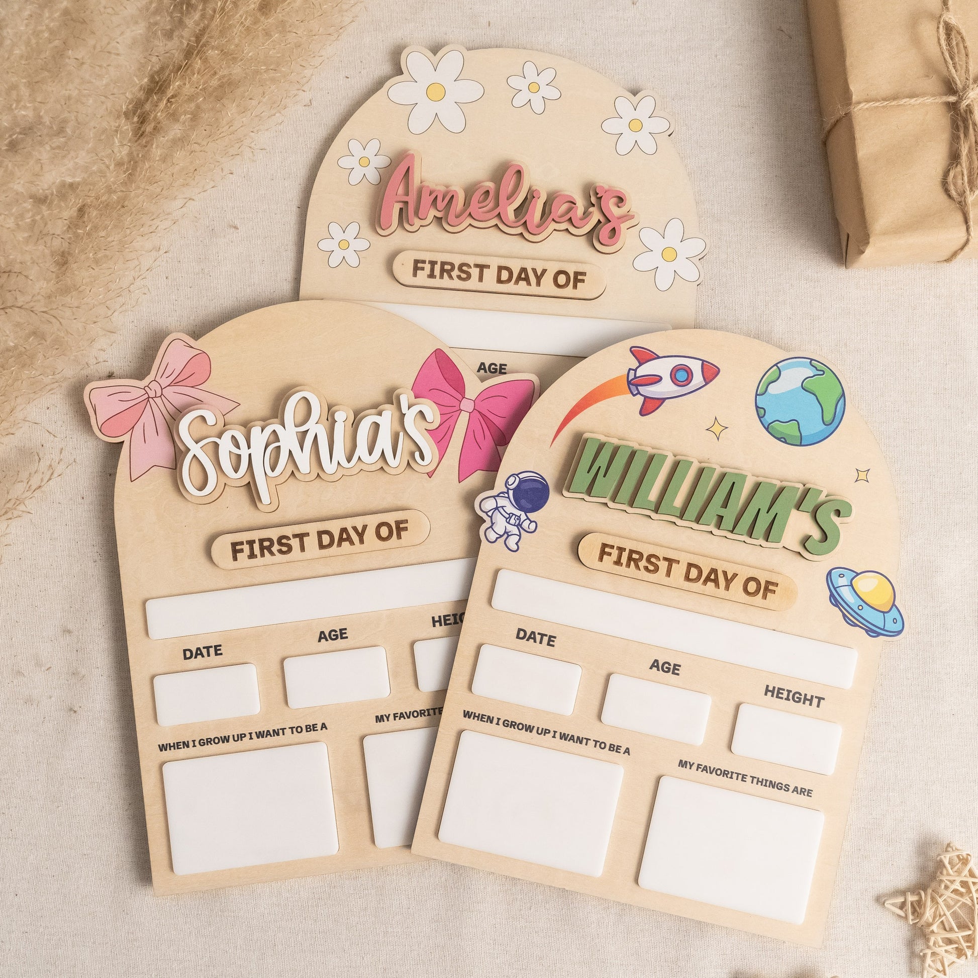 Designed for children and families, this personalized school board allows parents to record important milestones while creating a fun yearly tradition. The reusable first day sign can be updated each school year, turning simple photos into lasting keepsakes.