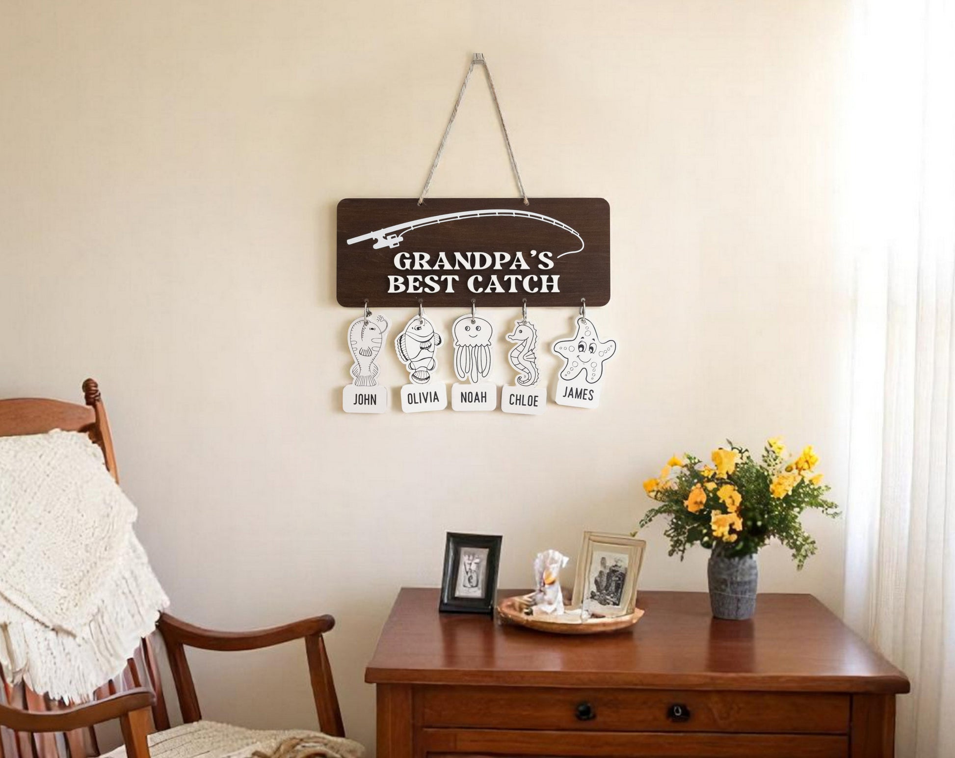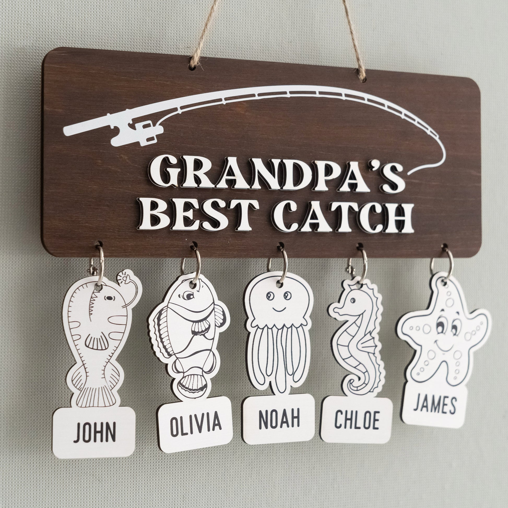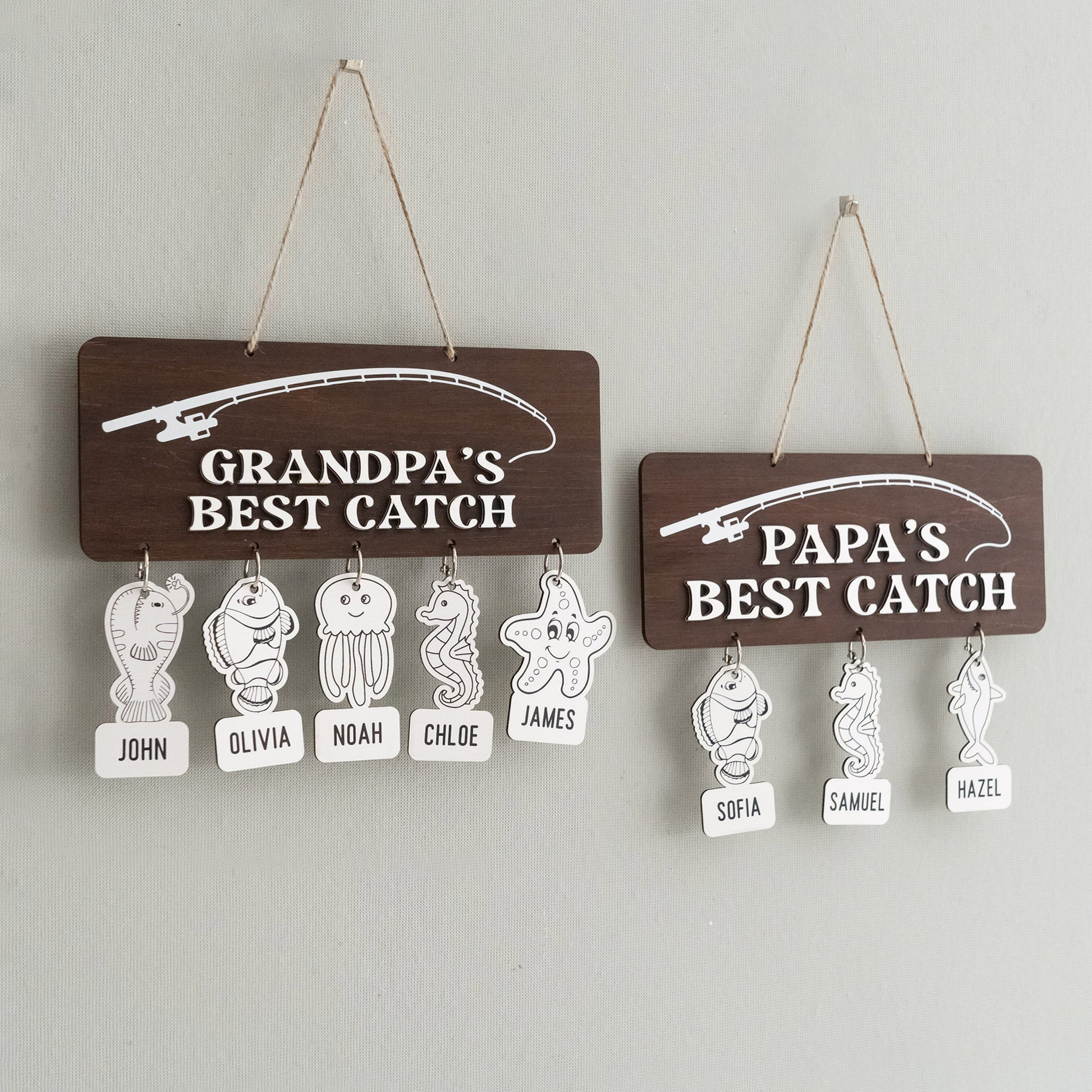 Personalized Papas Best Catch Sign for Papa Gift Y83