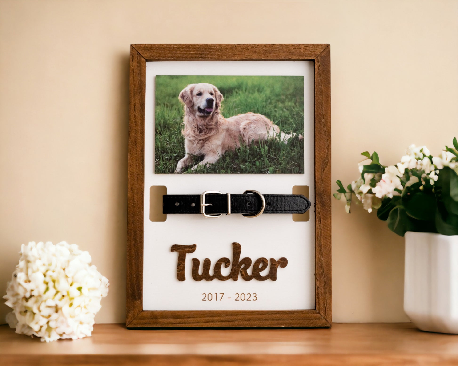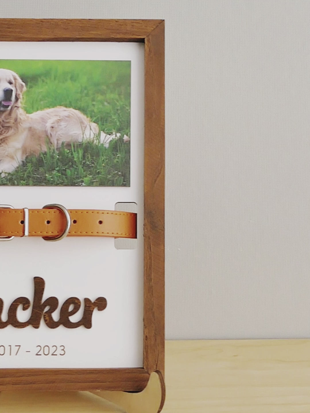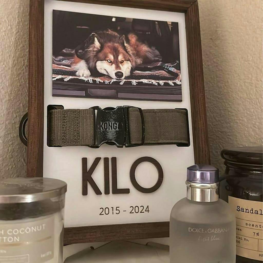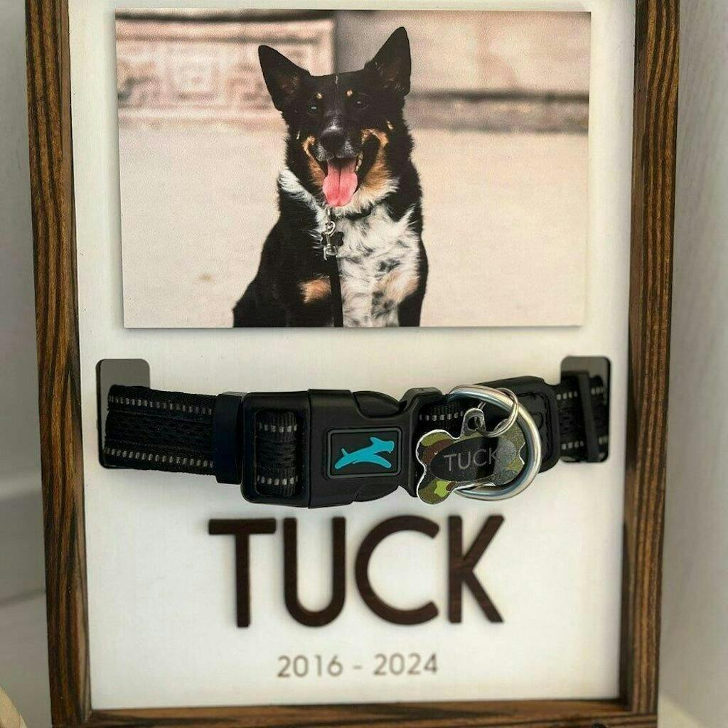 This personalized pet memorial sign is a meaningful way to honor and remember a beloved companion. Designed to hold your pet’s photo and collar, it transforms cherished memories into a lasting keepsake that brings comfort and warmth to any space.