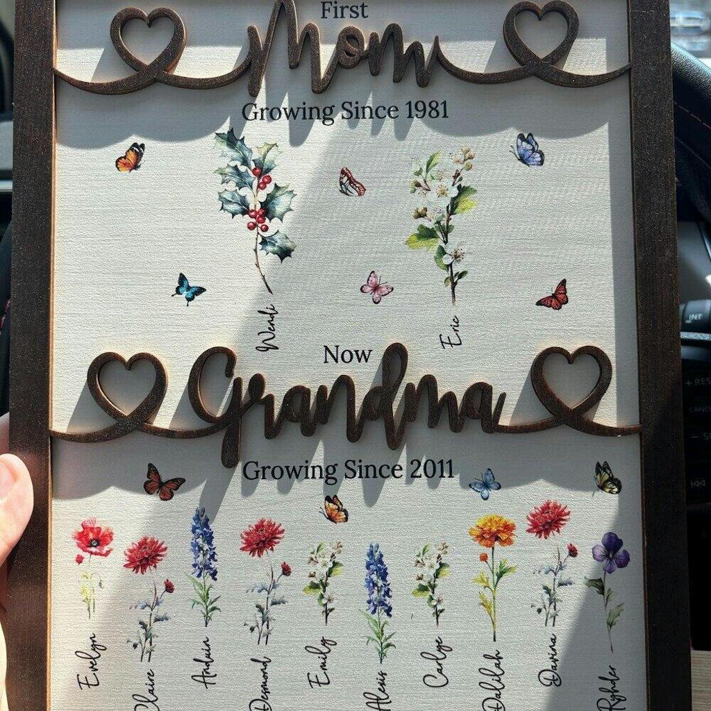 Personalized Wooden Family Flower Garden Sign for Mom Decor J65