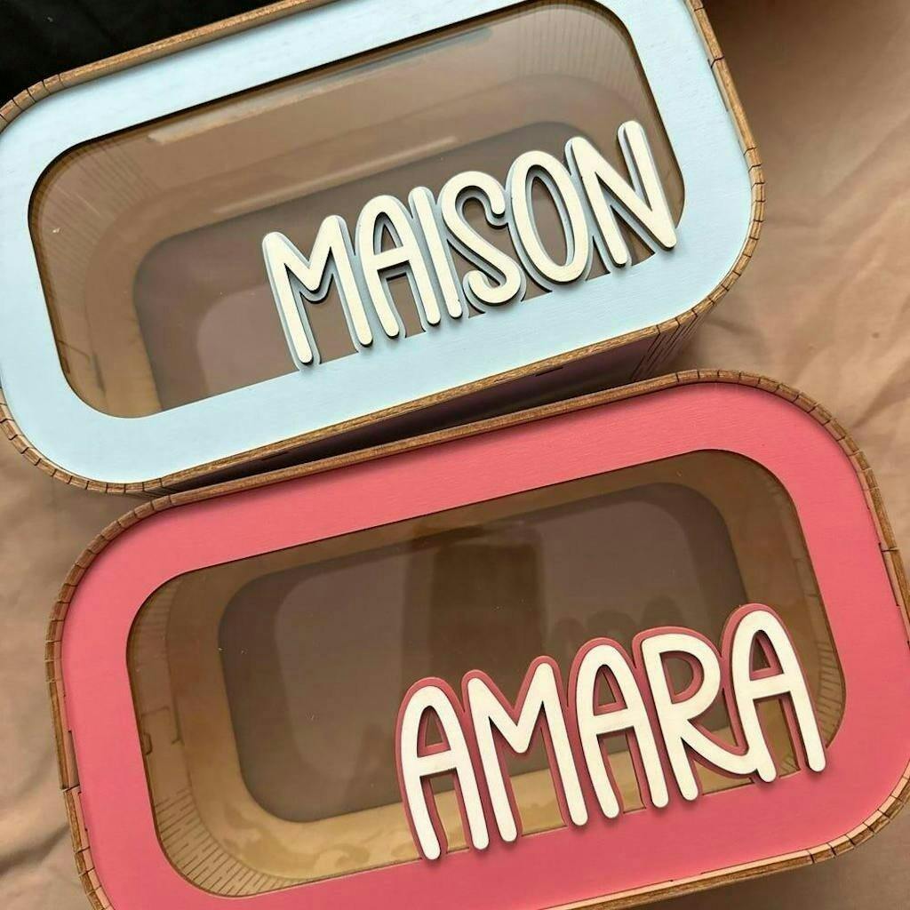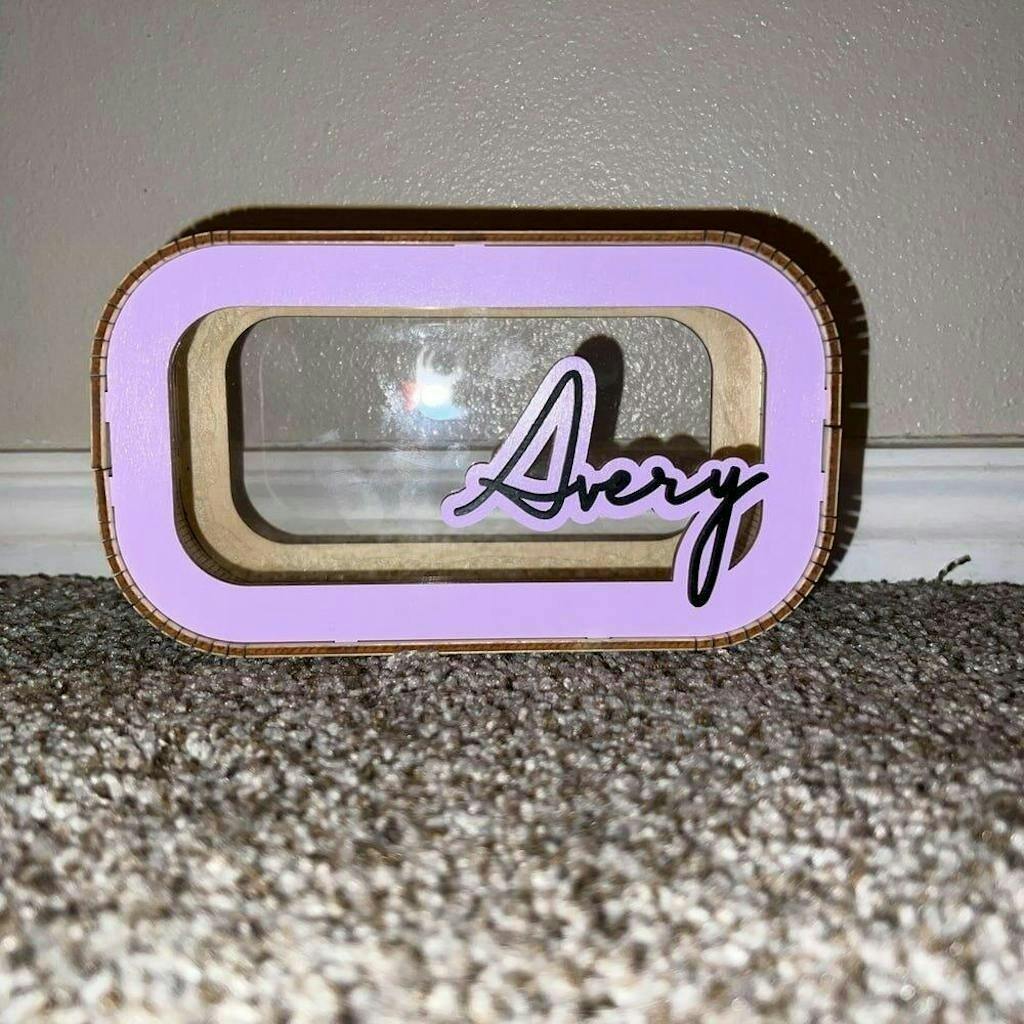 This personalized wooden piggy bank is a sweet and practical way for children to save and store paper money while adding a playful decorative element to their space. Made from wood and acrylic, it features a clear window and a custom name design that makes saving money feel special and personal.