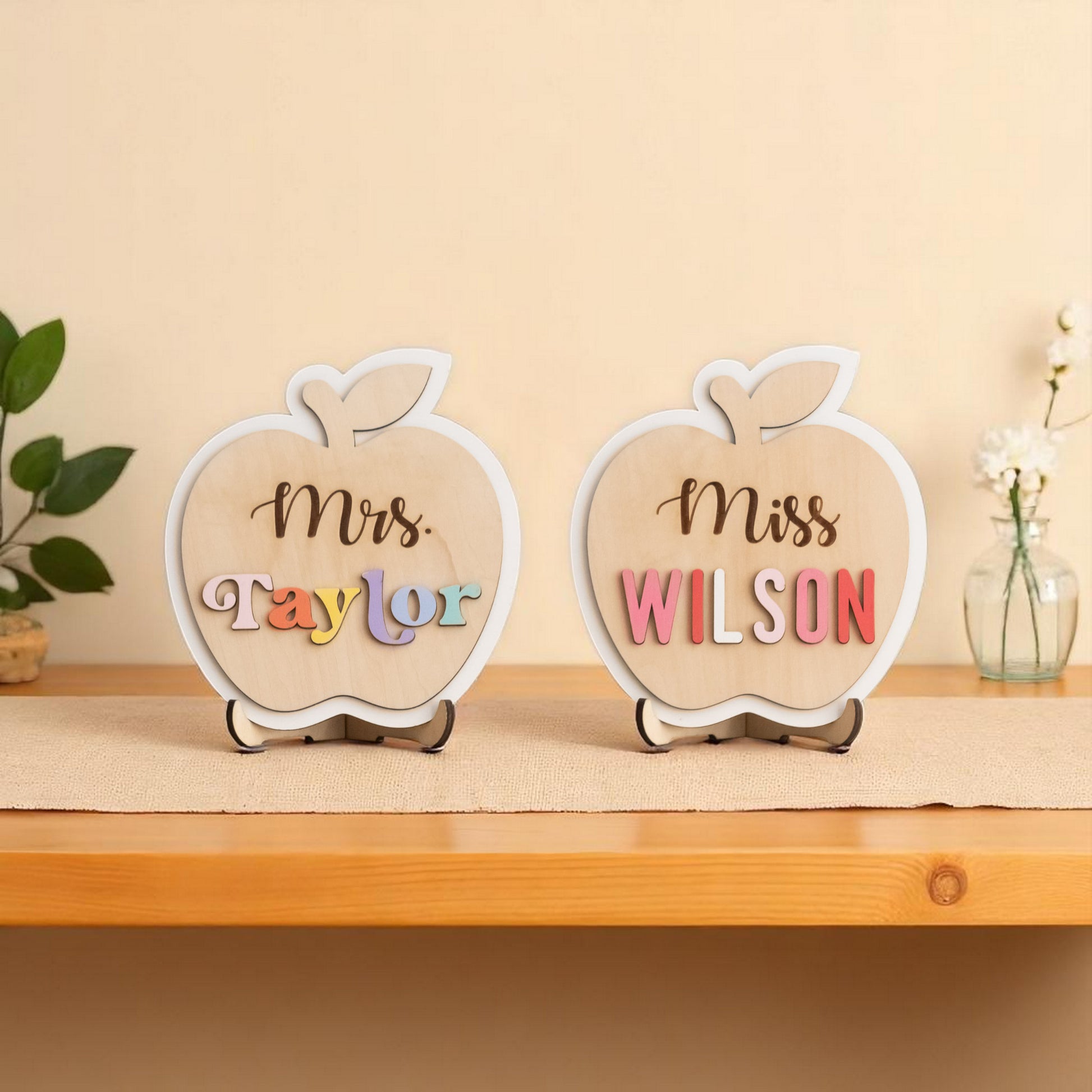 This Personalized Wooden Teacher’s Apple Sign is a charming decorative nameplate designed especially for teachers. Crafted from wood, it features a classic apple shape with customized teacher names, making it a meaningful teacher gift and a lovely teacher desk decor piece.