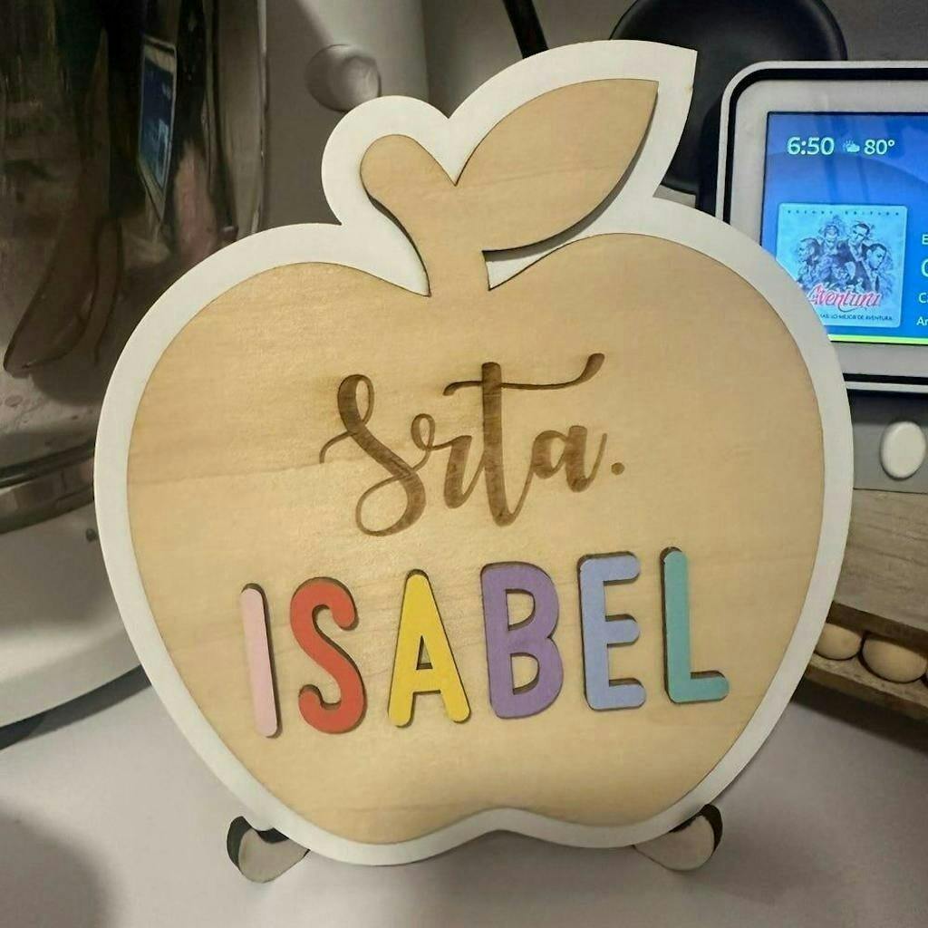 Personalized Wooden Teacher’s Apple Sign for Teacher Desk Decor J93