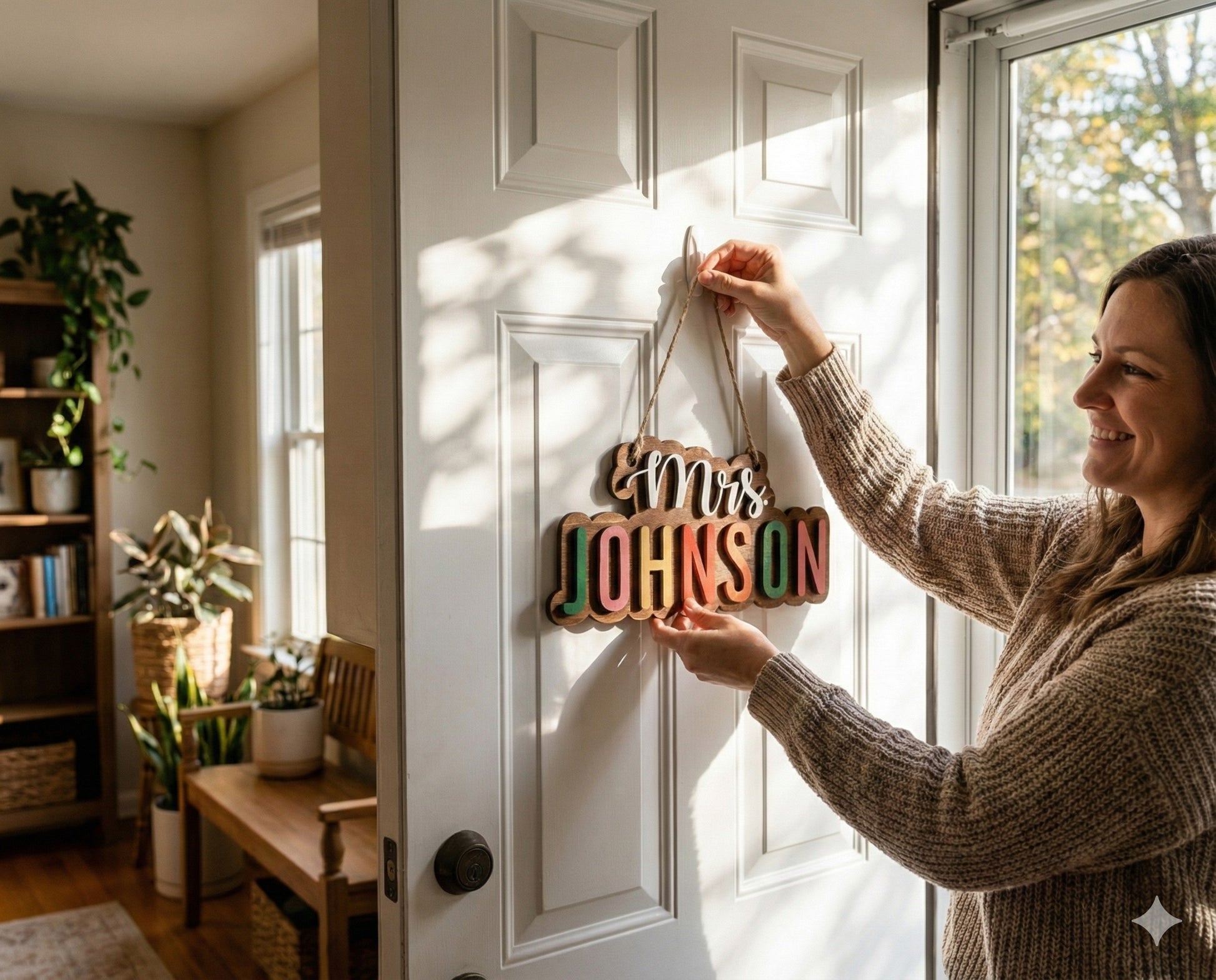 Created as a personalized teacher gift, this hanging sign is ideal for educators who enjoy simple yet meaningful decor. Its horizontal design makes it easy to hang on walls or doors while fitting naturally into boho, rustic, or minimalist interiors.