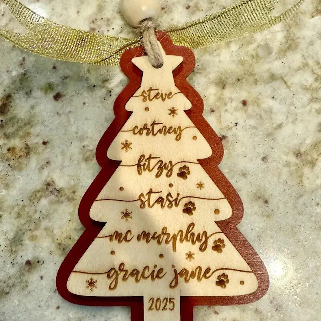 Wooden Family Christmas Tree Ornament Personalized for Family Christmas Ornament and Engraved Family Ornament R62