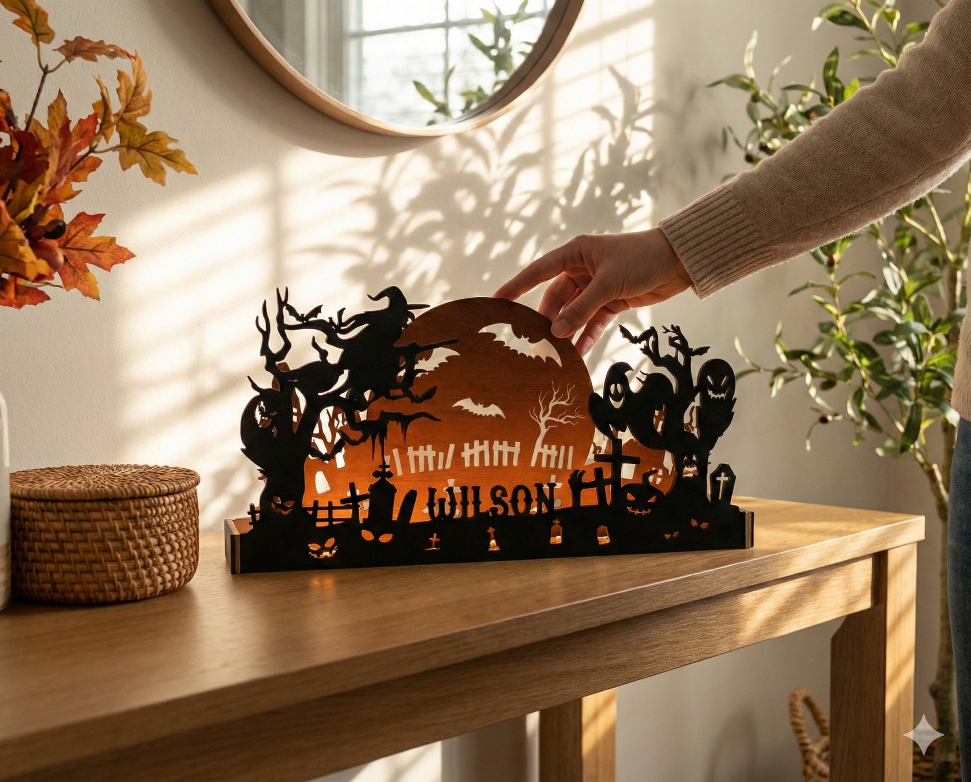 Wooden Halloween Silhouette Table Decor Wood for Home Decor R36